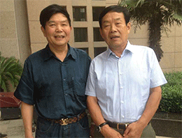 時任河南省人民政府省長郭庚茂先生(左)與臺州商會支部書記、《百花散》傳人梅安富先生合影